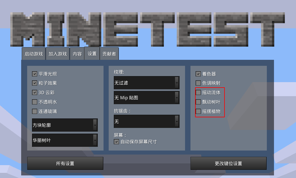 Minetest如何让树叶飘动和植物摇摆与流动的水