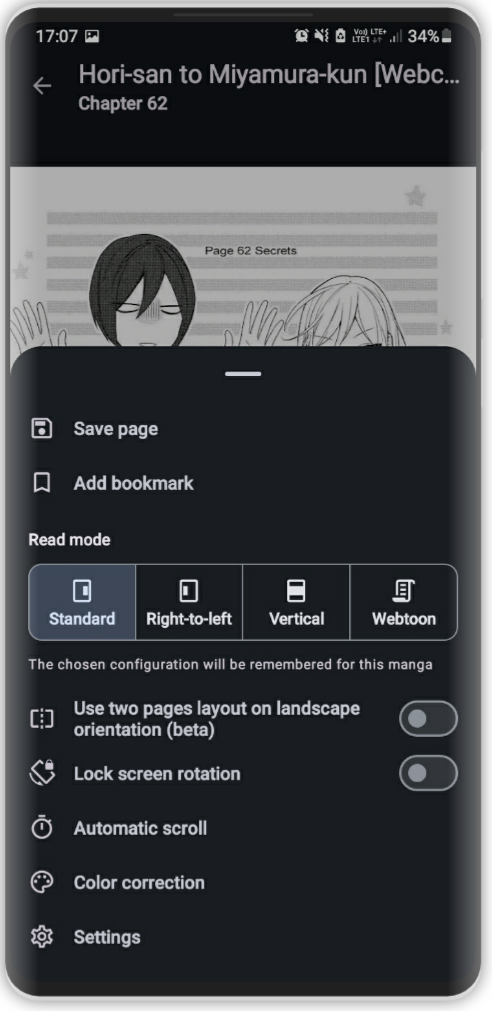 标准和 Webtoon 优化的可定制阅读器、阅读界面上的手势支持
