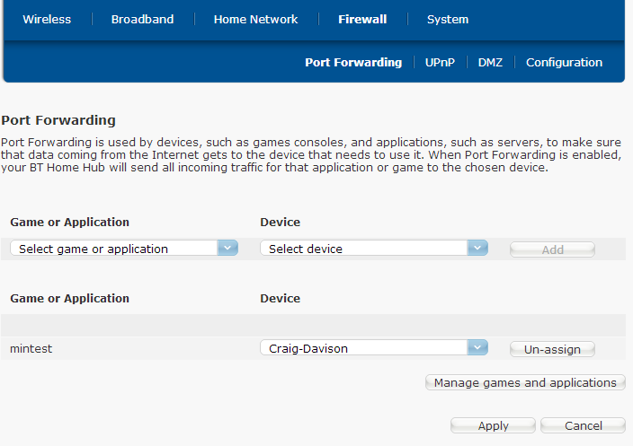 - 您需要进入端口转发设置。它们可能在防火墙设置下。也可以称为“转发新游戏/应用程序。